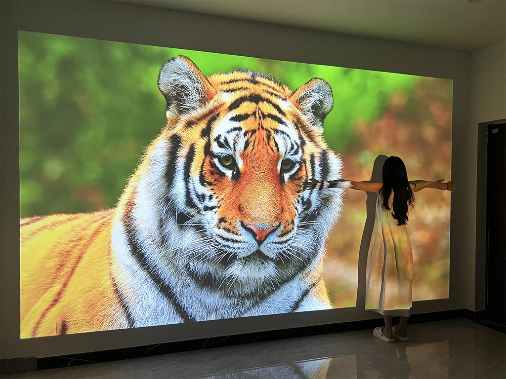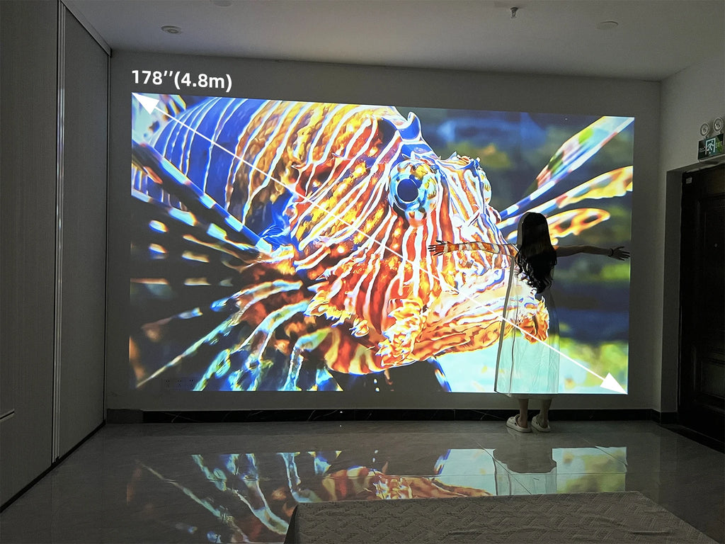 Our recommended projection distance is 2.7m (100 inches) and 3.26m (120 inches), which is the best distance for eye protection and visual enjoyment.