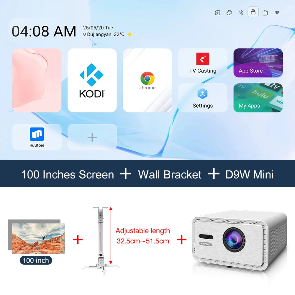 D9W Uiltra: 3000 ANSI, 3+128G, 10W*3, 26000:1, size-16*26*29, 3.8kg