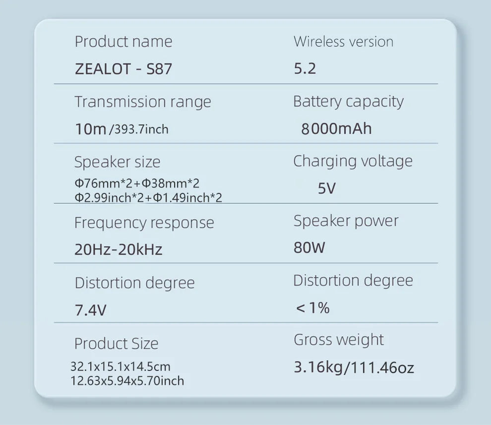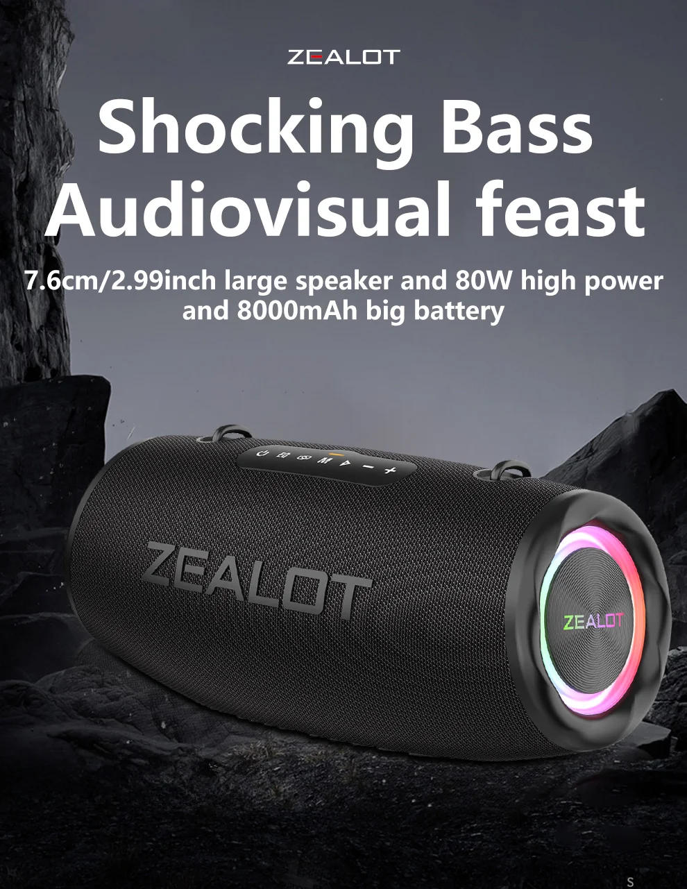 ZEALOT S87 80W Wireless Sound Box: Portable External, Subwoofer, Double Pairing, 16000mAh Battery